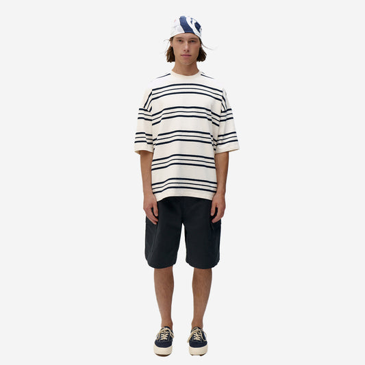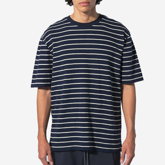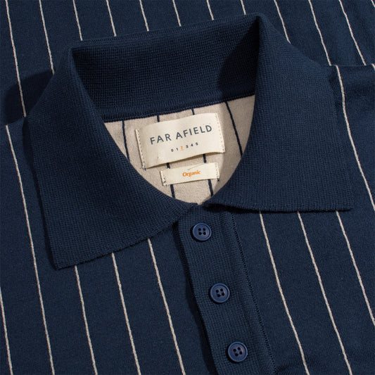 Benny Pinstripe Knit S/S Polo - Navy/Sand