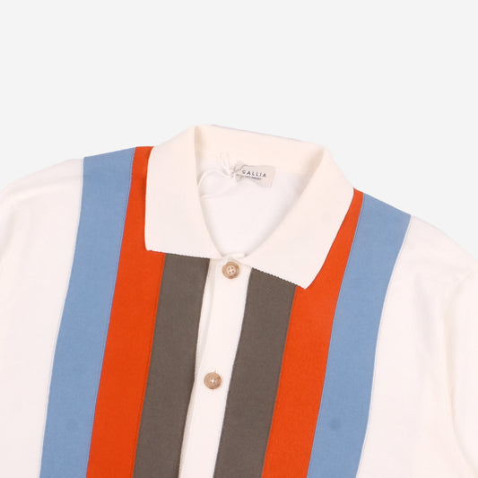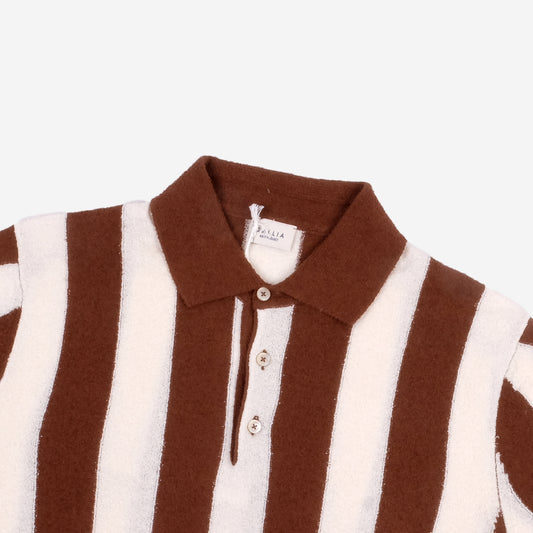 Emil 2-Tone Vertical Stripe Knit Polo - White/Brown