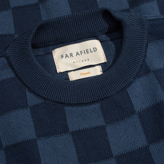 Caetano Checkered Knit T-Shirt - Navy/Blue
