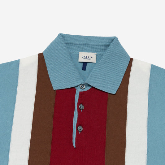 Reto Inlay Line Knit Polo - Blue/Brown/Burgundy