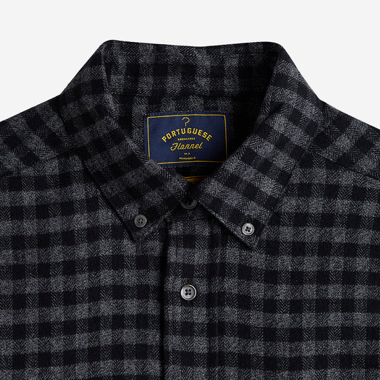 Roca Herringbone Check Flannel Shirt - Grey Charcoal