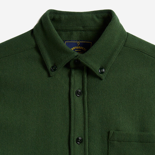 Espiga Herringbone Flannel Shirt - Hunter Green