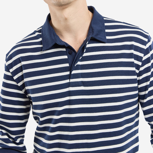 Long-Sleeve Stripe Polo - Marine Deep/Milk
