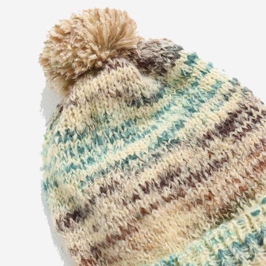 Bobble Loco Wool Knit Beanie - Stone/Multi