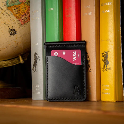 Dunvegan Spring Money Clip Leather Wallet - Black