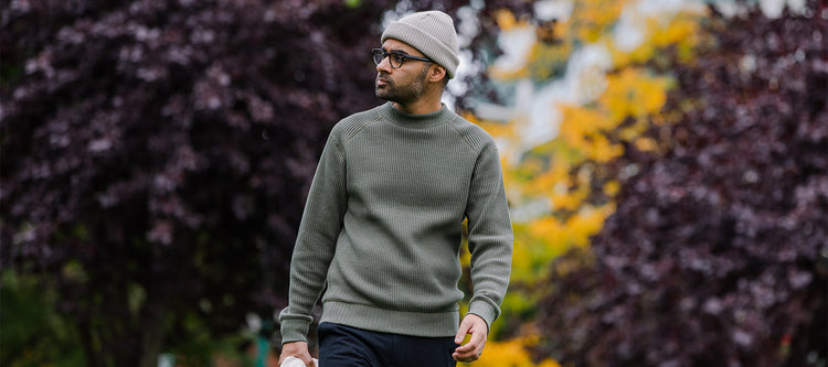 Big Waffle Mid-Neck Sweater - True Green