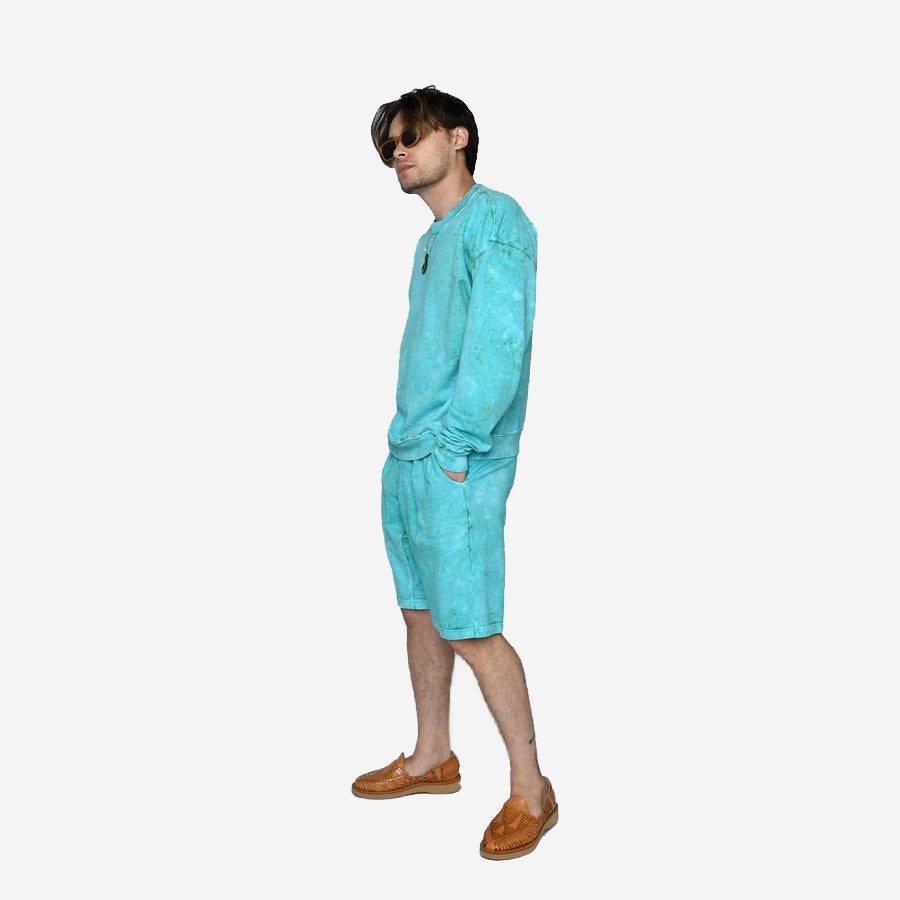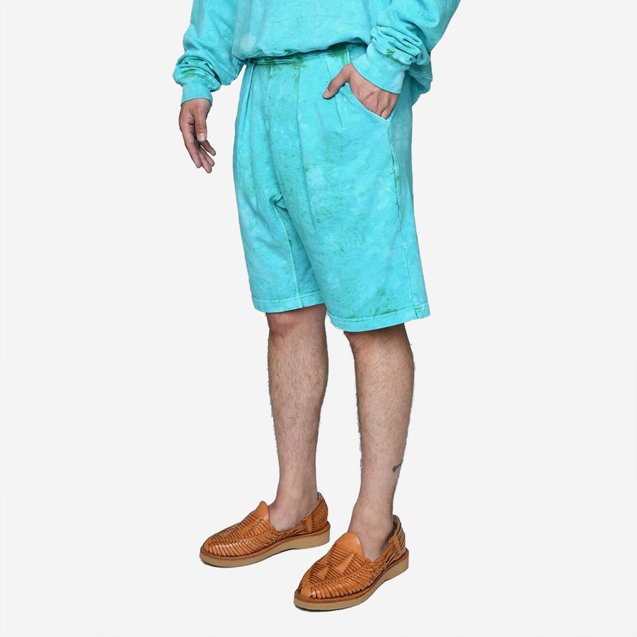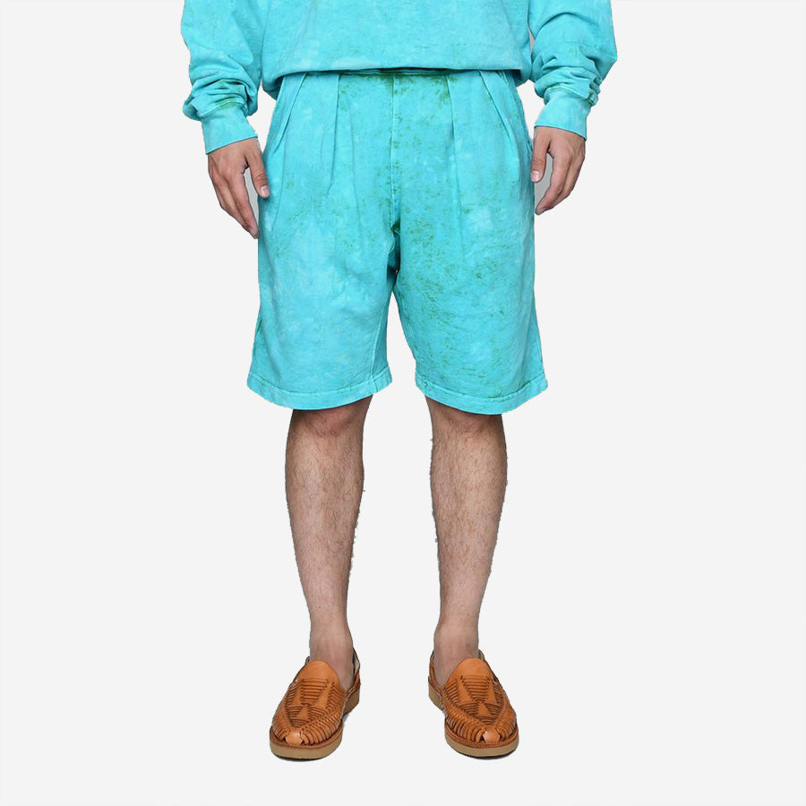 French Terry Pleated Shorts - Tie Dye Green + Mineral