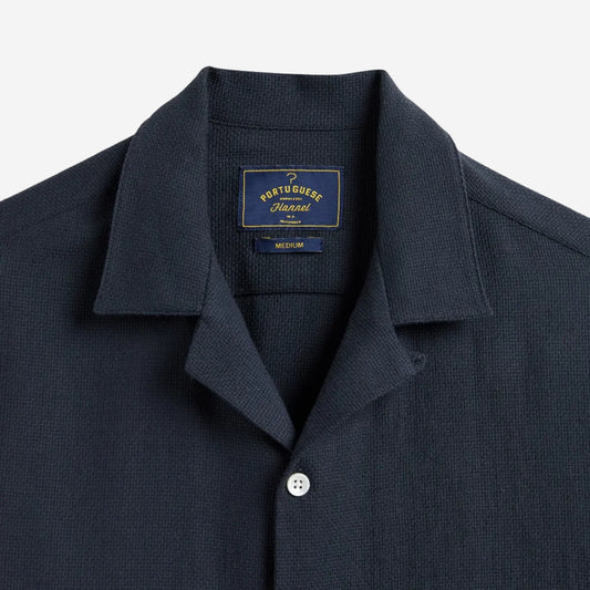 Piqué Floral Embroidery S/S Vacation Shirt - Navy