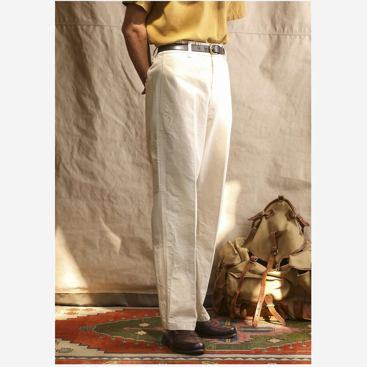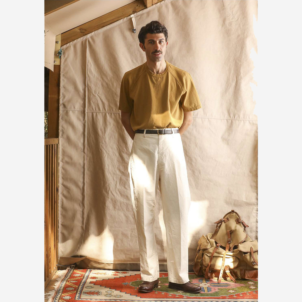 The Alcatraz pants by East Harbour Surplus take inspiration from the classic workwear. Made from a washed canvas, the fabric is high-quality, durable, and tightly woven cotton. The straight fit trousers have an flat front and feature two three-needle side seam pockets, two rear patch pockets, a thigh patch pocket and Corozo nut buttons.