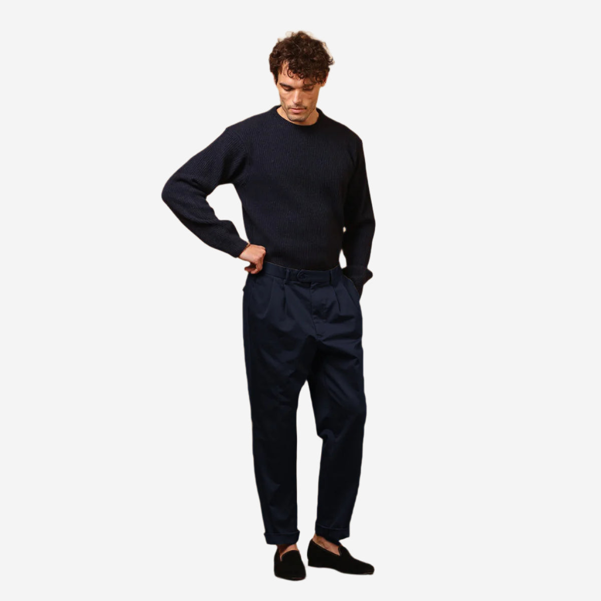 Martin Two Pleat Gabardine Pant - Navy