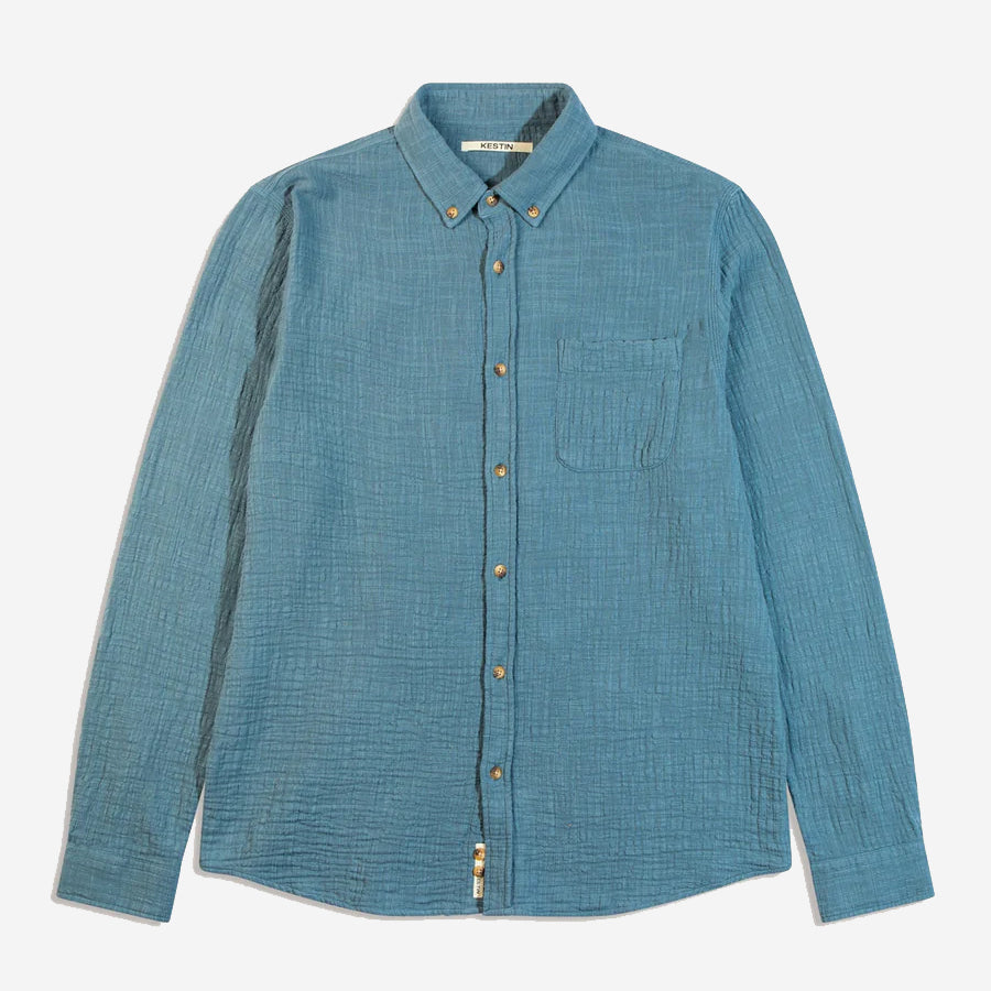 The Raeburn Button Down is a classic fitting shirt with full button closure and button-down collar. Cut from a relaxed, soft, lightweight textured cotton, this shirt is ideal for summer layering. Garment dyed for extra character to reflect the colours of the Isle of Skye coastline. Detailing includes a clean finish, curved hem, patch pocket and twin needle stitching for extra reinforcement.