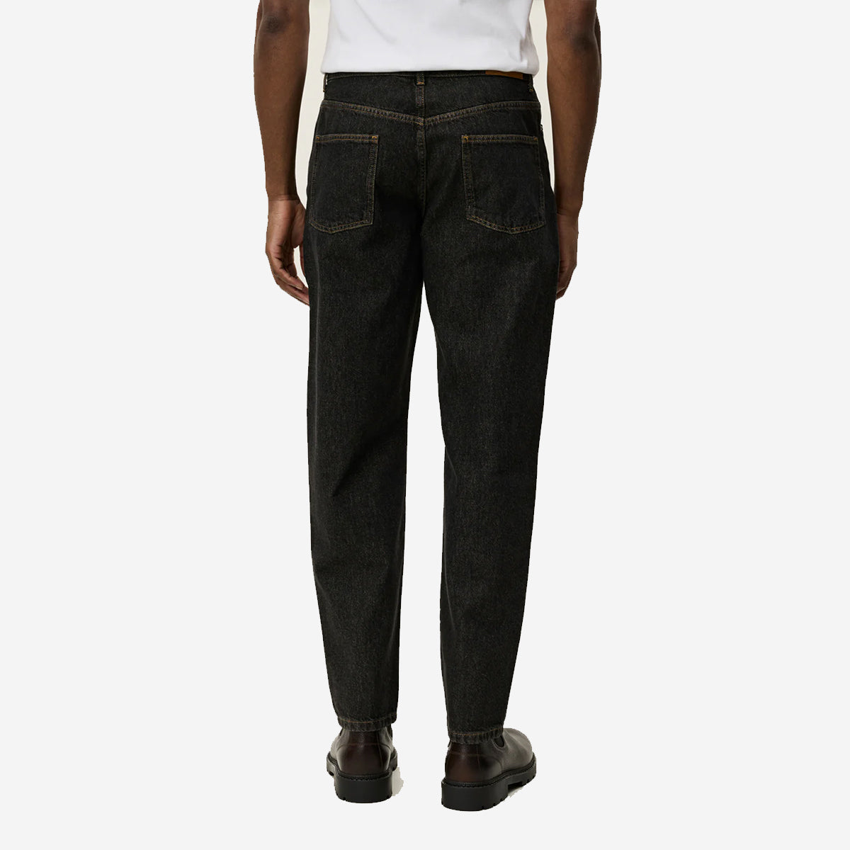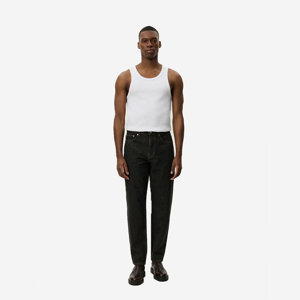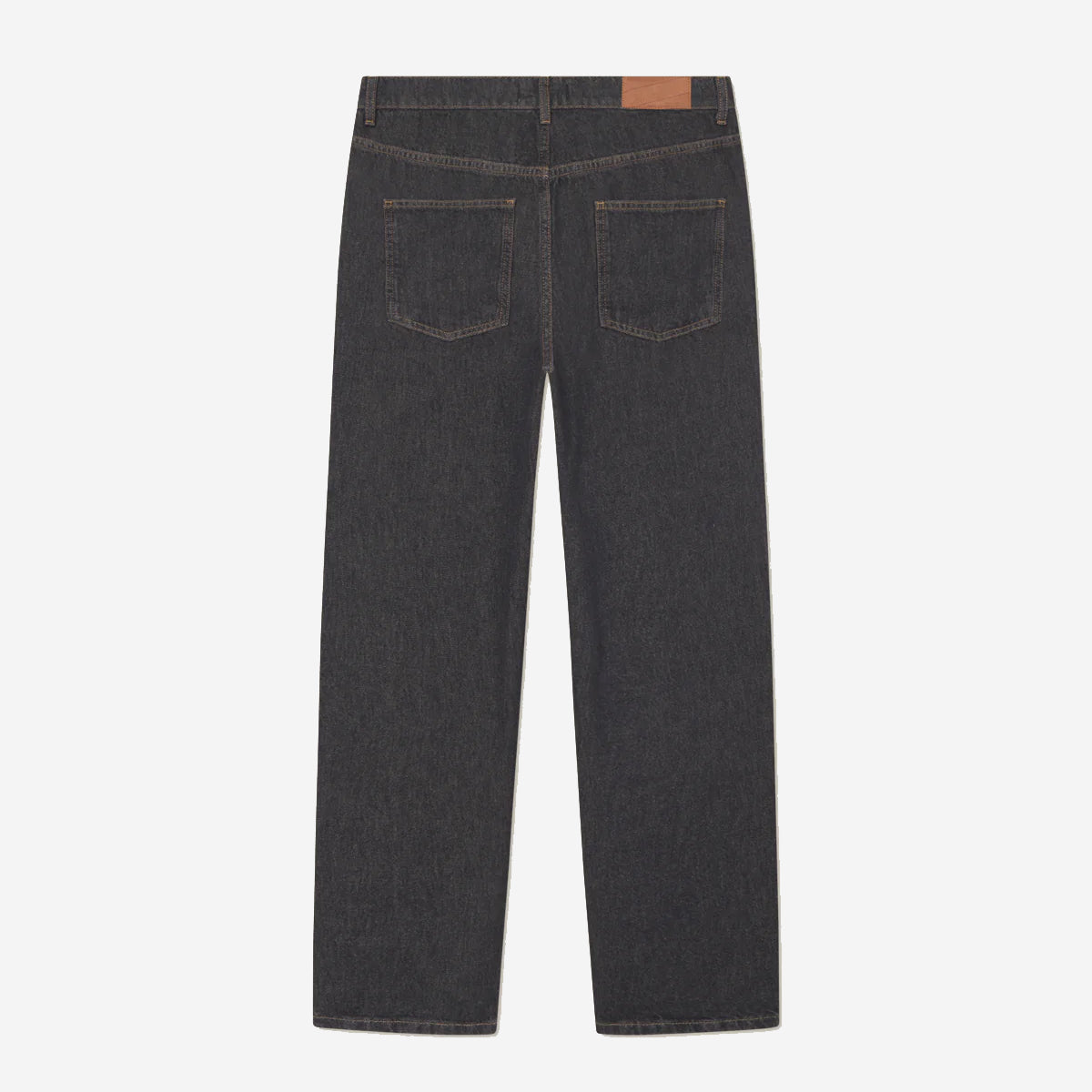 The signature Ryder fit, offered in a two-tone black fabric. These tapered jeans are crafted from heavyweight organic cotton denim and finished with selvedge-style detailing and classic 5-pocket construction and a branded jacron patch at the back. They're perfect for those who prefer retro jeans for a '90s look.