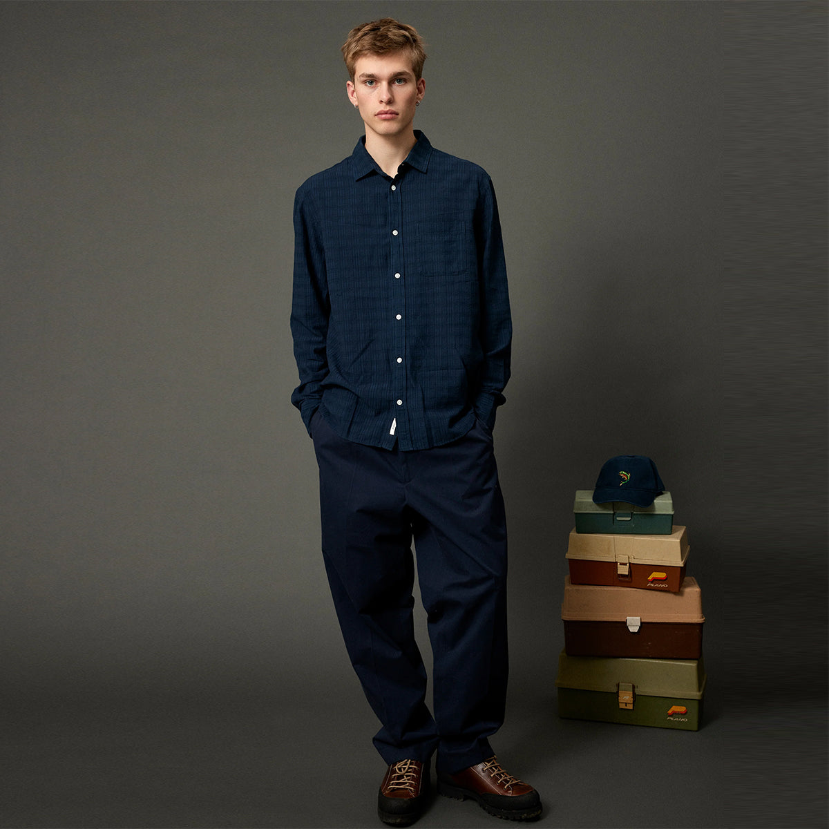 - Welt pockets at rear