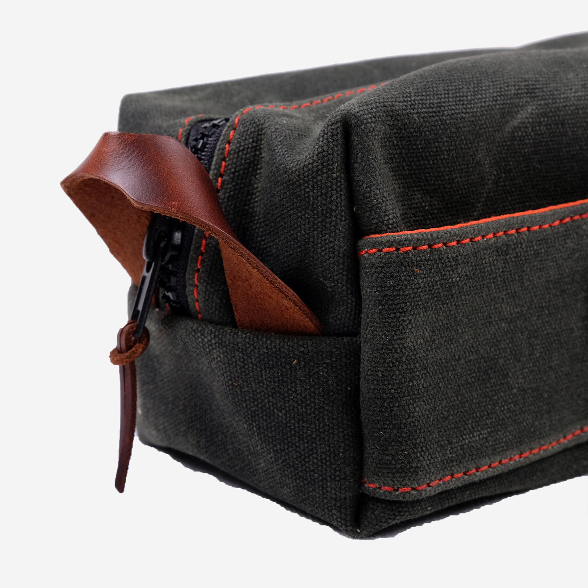 Linking up with the duo otherwise known as Phee's, we bring you the Everything Bag. Constructed by hand with an Olive heavyweight waxed canvas, Nutmeg lined interior and Orange thread to keep it all together.  This bag is durable, water-resistant, and packable.  The perfect bag to store anything from toiletries to art supplies.