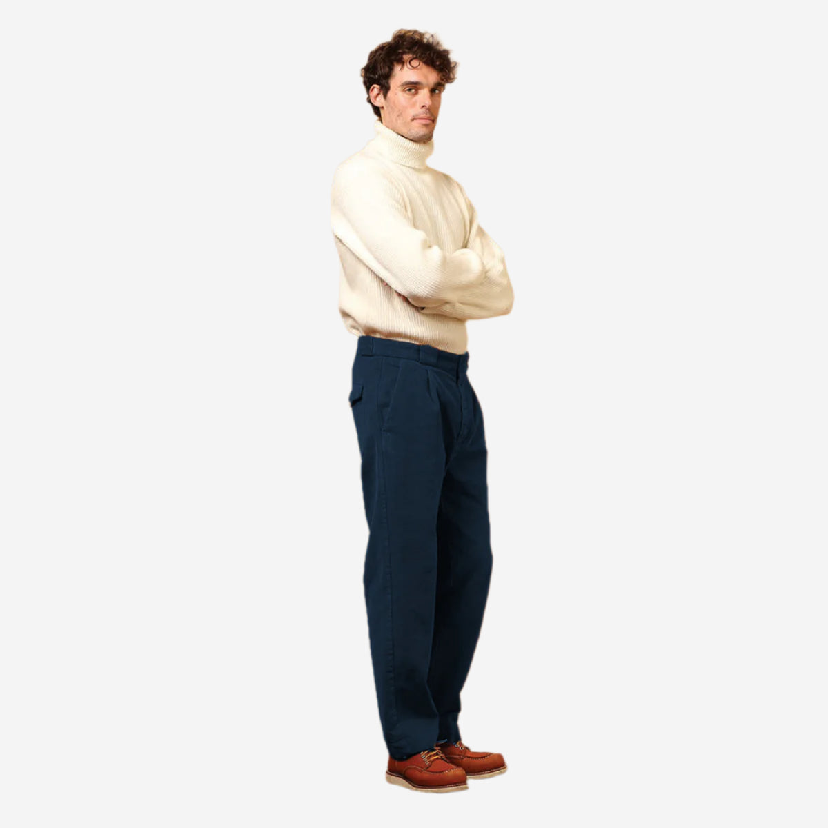 East Harbour Surplus continues to look to archival military pieces for inspiration this season and delivers this pair of washed cotton corduroy trousers in a classic navy. The soft 12-wale fabric is secured with a regular waistband button closure and zip fly, the single pleat front is accentuated with a slightly tapered leg and two side entry pockets, two flap patch pockets at the rear and corozo buttons.