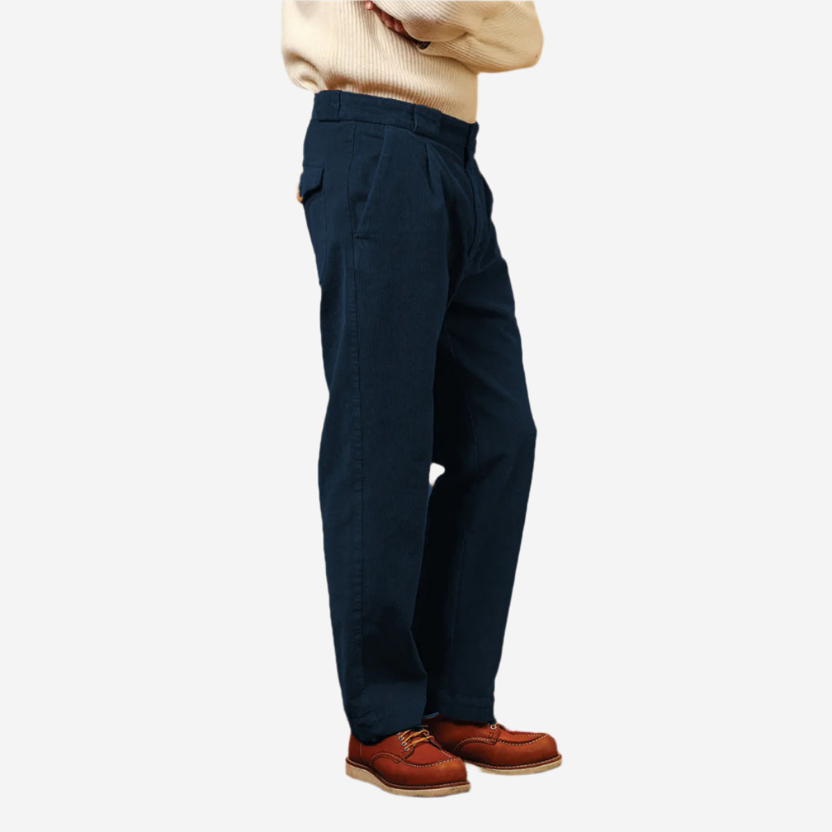 Amarillo One Pleat Washed Corduroy Pant - Navy