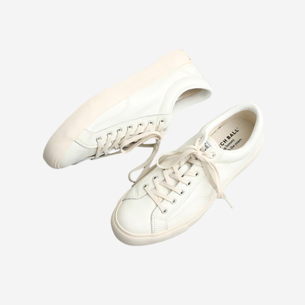 Modelled after a 1960's basketball sneaker, these low cut leather sneaker takes a classic silhouette and gets combined with modern techniques for an innovative sneaker. The full grain leather uppers are vulcanized to the rubber outsole via piping foxing tape on the midsole. The padded opening is wrapped around the ankle for a comfortable fit while the insole provides a cushioned and breathable fit. Additional features include branding at heel and on the tongue.
