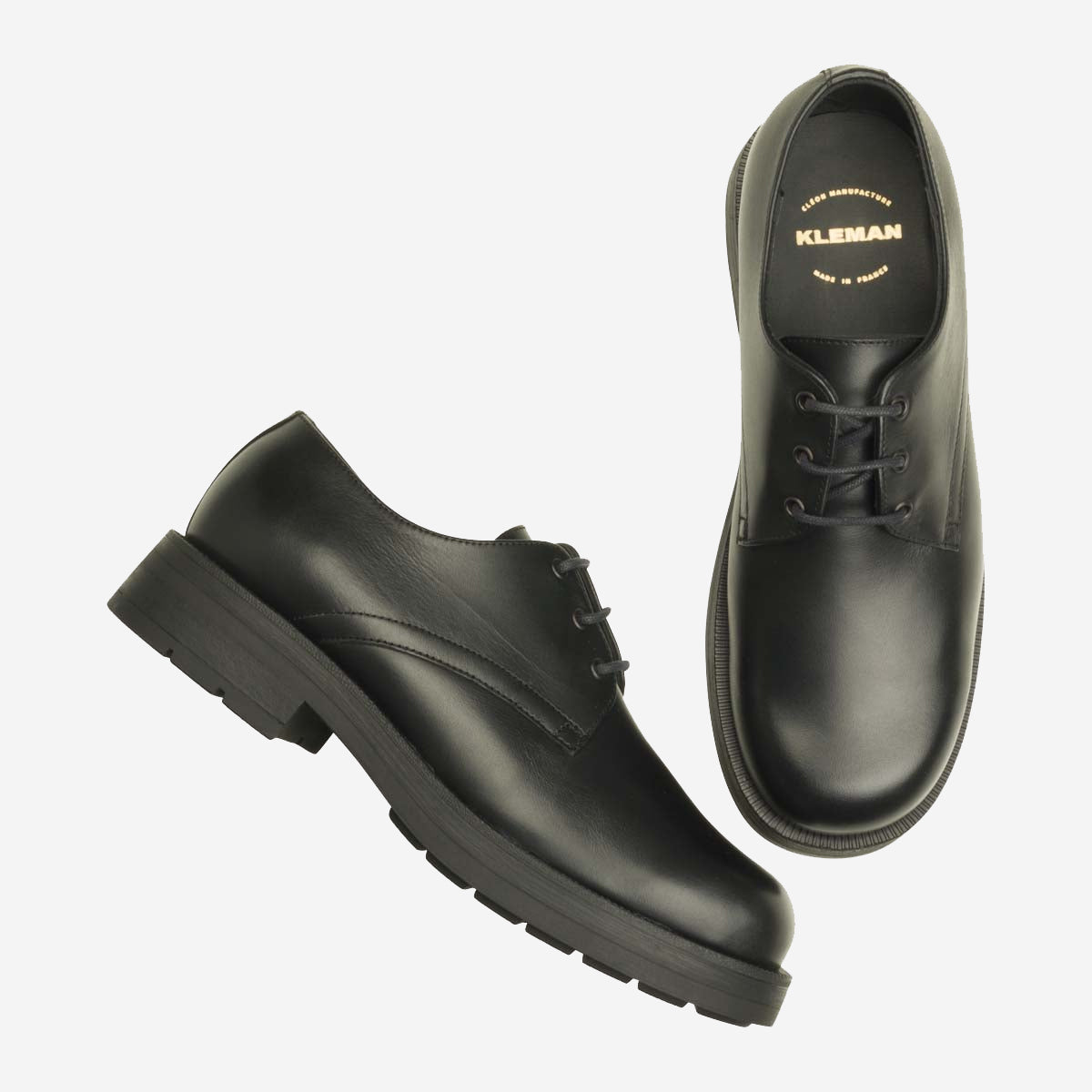 The Chemin is a vintage inspired derby with Kleman's distinct hand writing. Featuring a classic combination of leather uppers and a rubber lugged outsole, this is the timeless, understated shoe that is perfect for every occasion. Made from quality European leathers, the upper is welded on a rubber anti-slip TRAVERSE GRIP sole. The sole embodies a retro- classic look with inflated volumes and the offset of the treads towards the inside. Finished with calf lining.