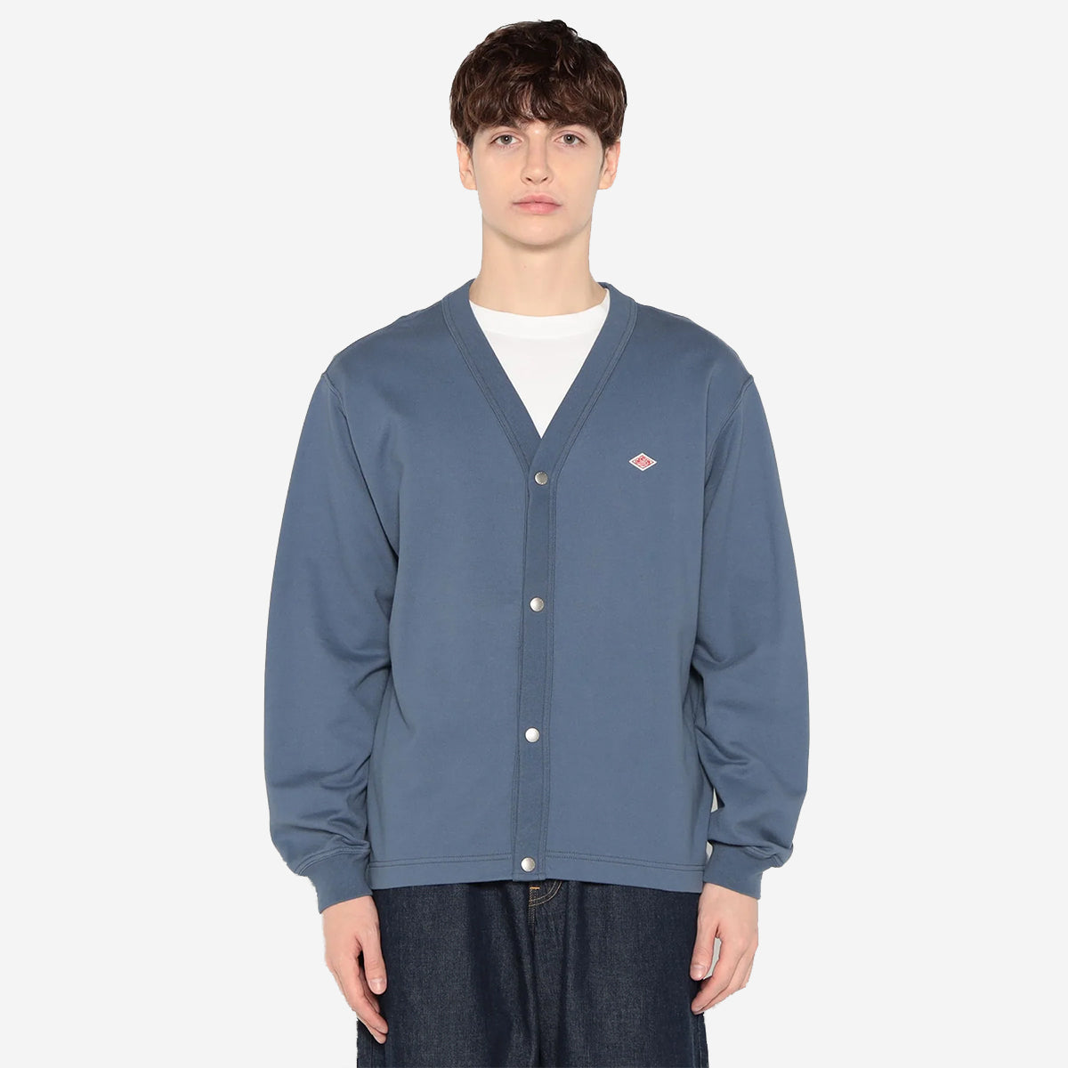 Cotton Terry V-Neck Cardigan - Dark Blue