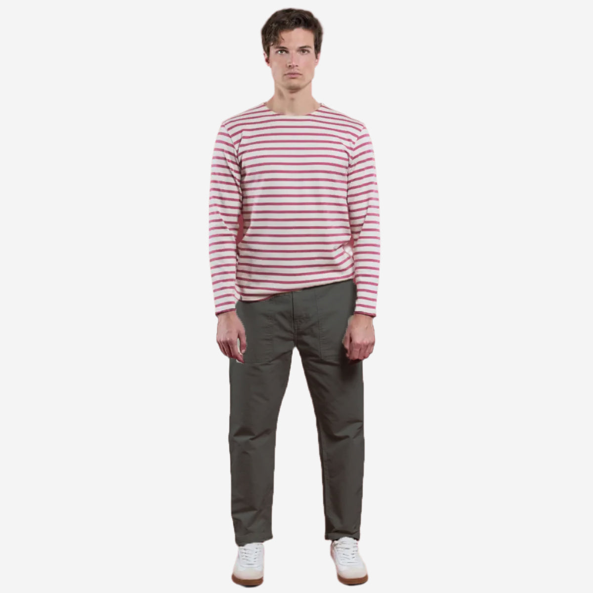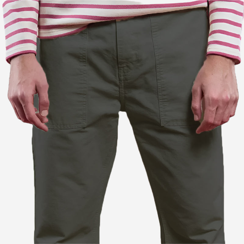 Born from the storied legacy of Armor-Lux, a brand synonymous with timeless maritime fashion, these pants seamlessly blend comfort and staple style. In this sage green, these pants exude an air of understated elegance. The cotton canvas fabric adds a touch of texture and breathability, making them perfect for any season. The design boasts a relaxed top block that tapers to the opening, which complements your laid-back style while ensuring all-day comfort. With a nod to both nautical tradition and modern fashion, these pants are a versatile addition to your wardrobe.