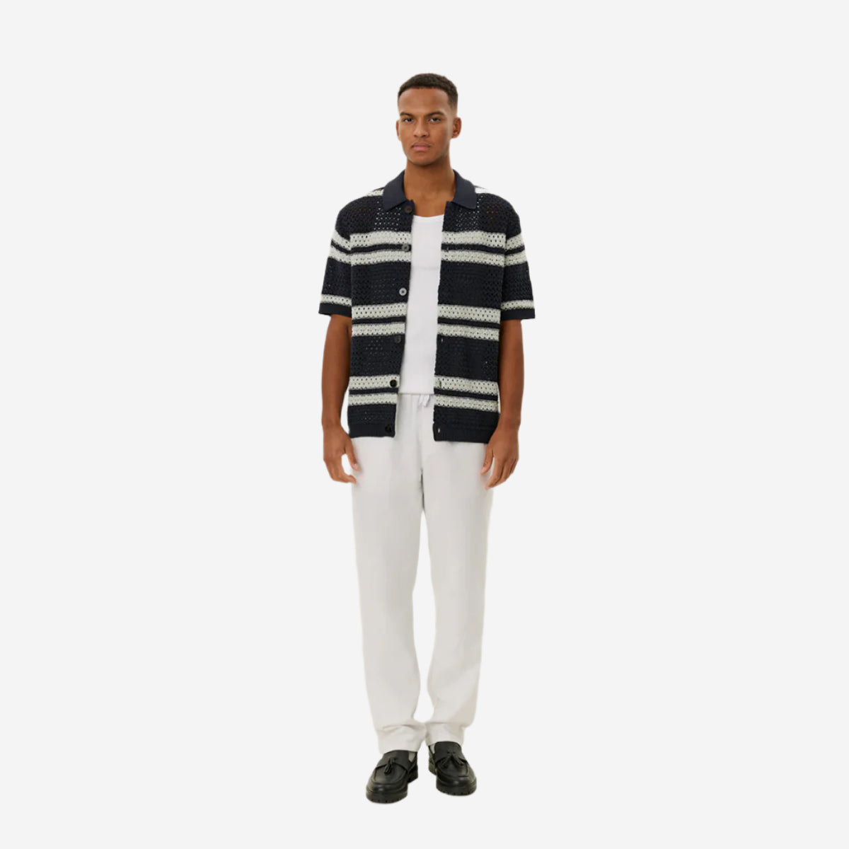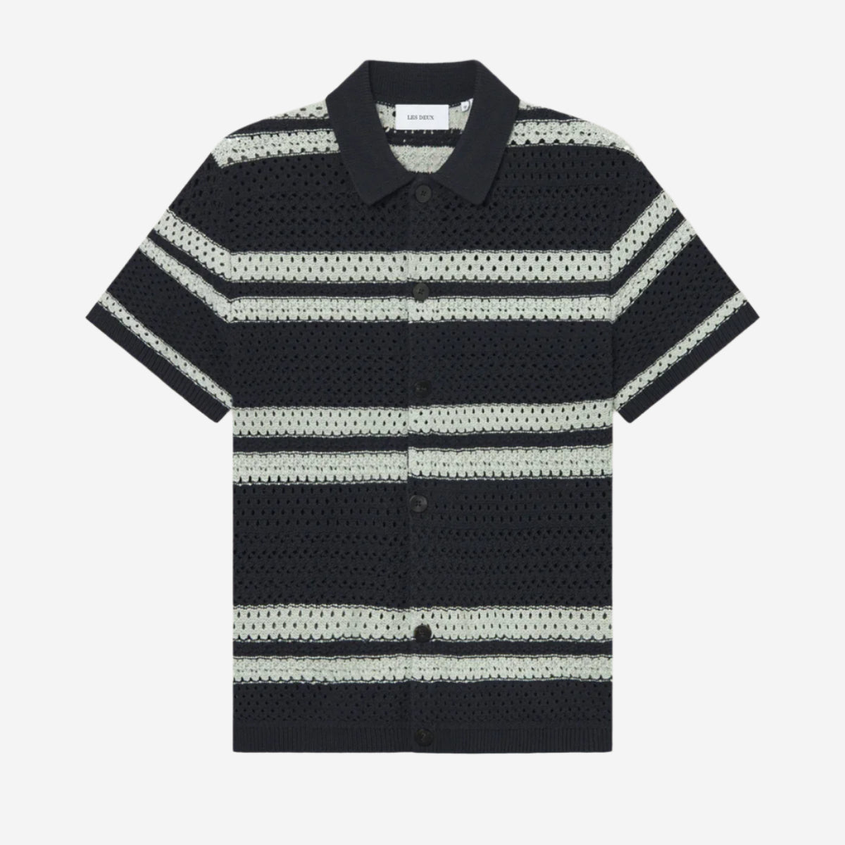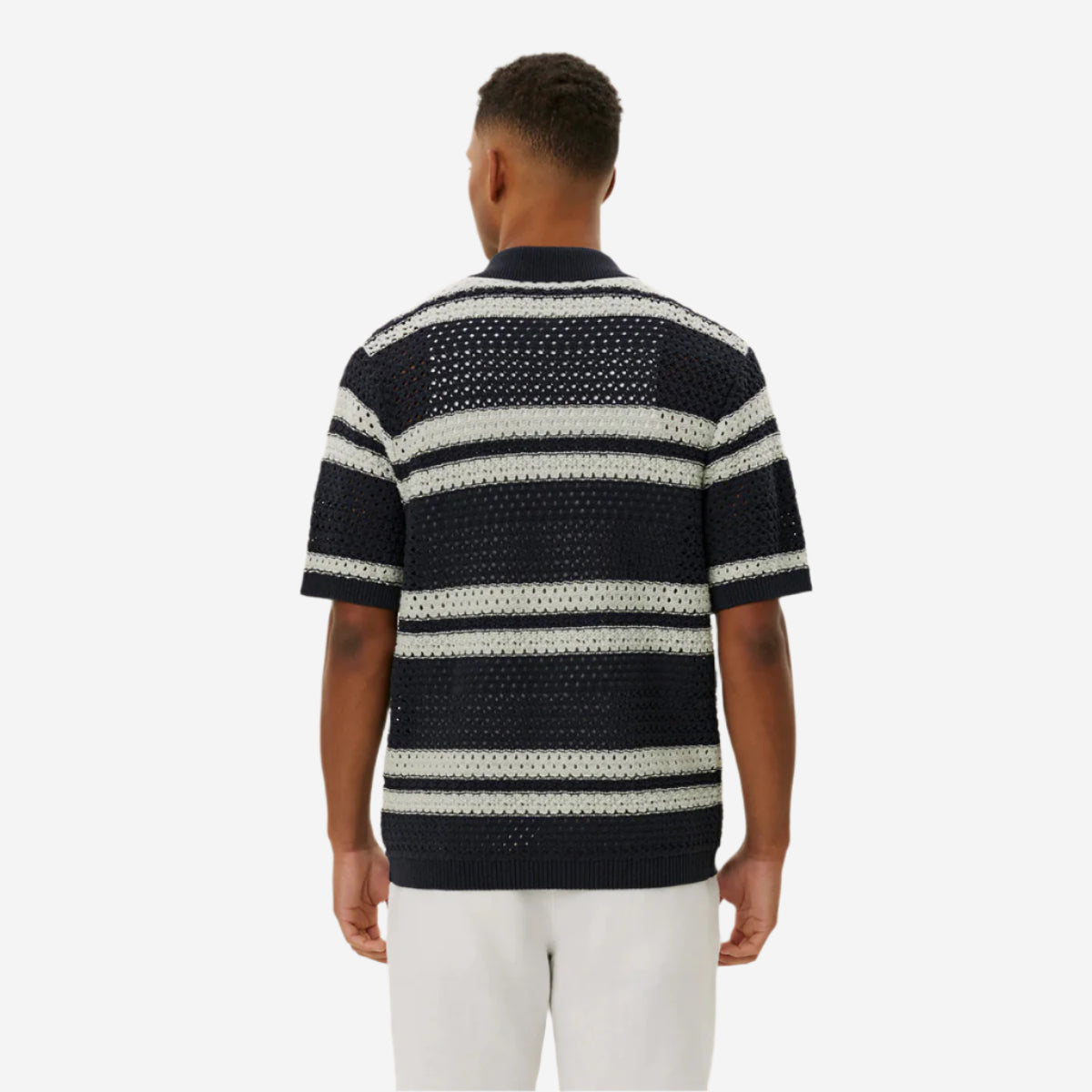 Gianni Knitted Stripe S/S Shirt - Dark Navy