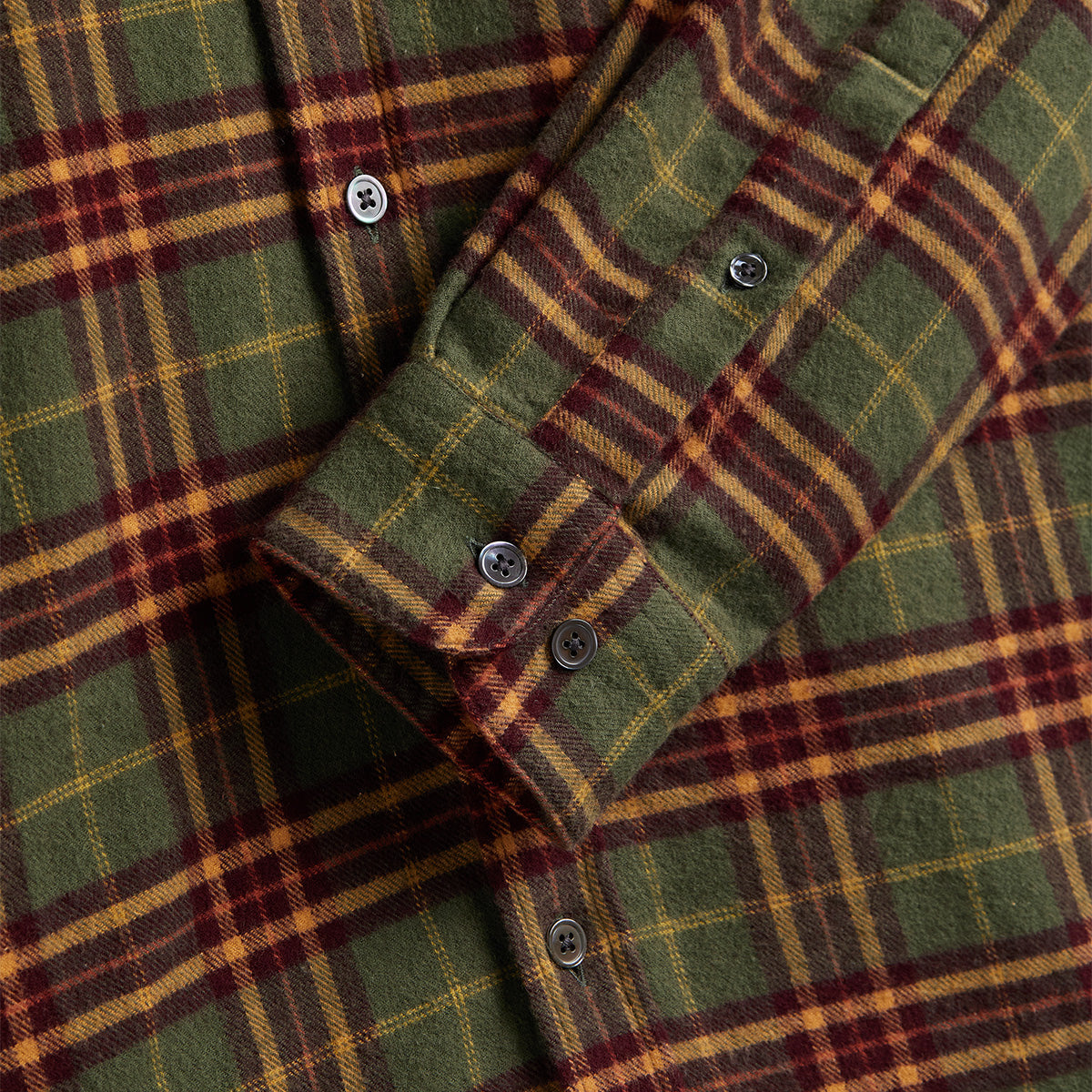 Hoop Plaid Flannel Shirt - Olive/Burgundy