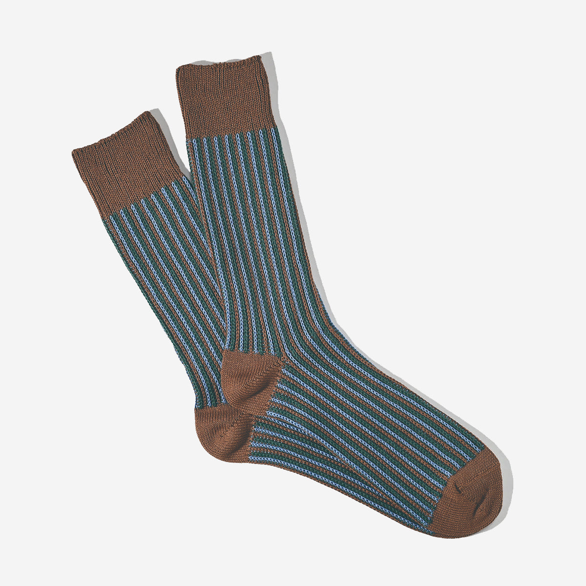 Introducing the Jacquard Stripe Crew, a vibrant socks that looks great on feet. Made using a jacquard patterned stripe, they are finished off with colour-blocking at the toe, heel and cuff. Cut in Japan from a durable mix-fabric, these are designed to ensure a comfortable fit with a high quality finish.
