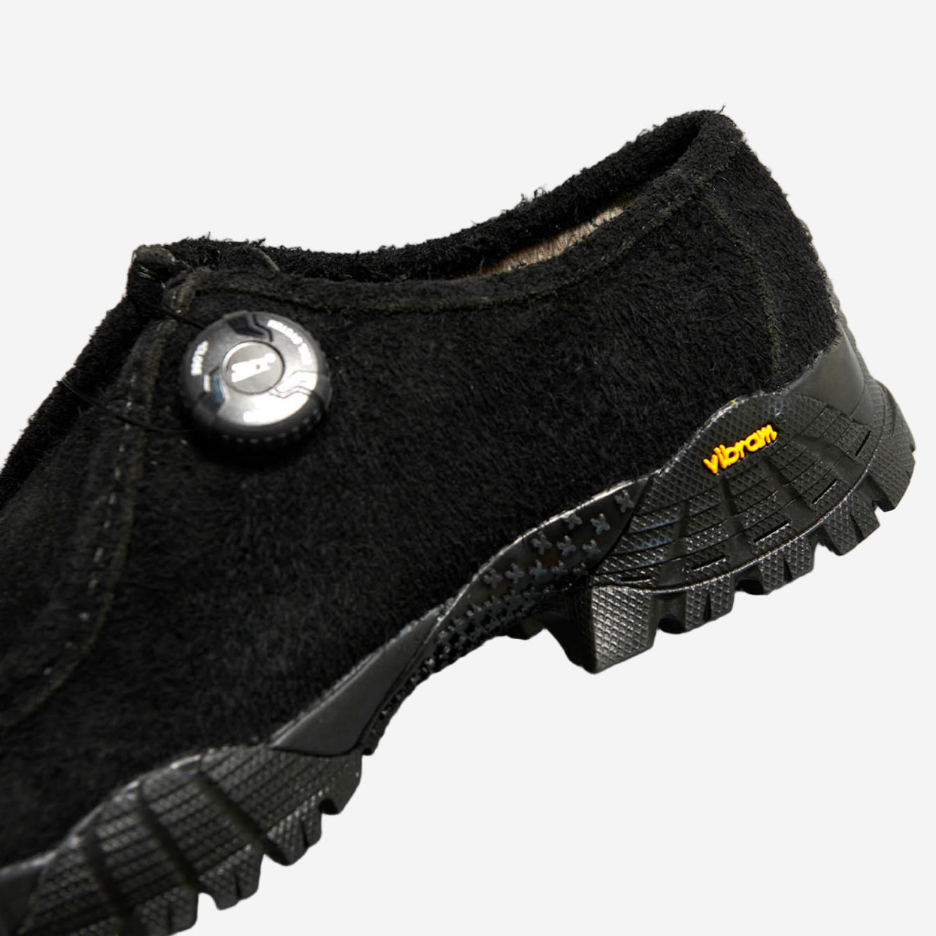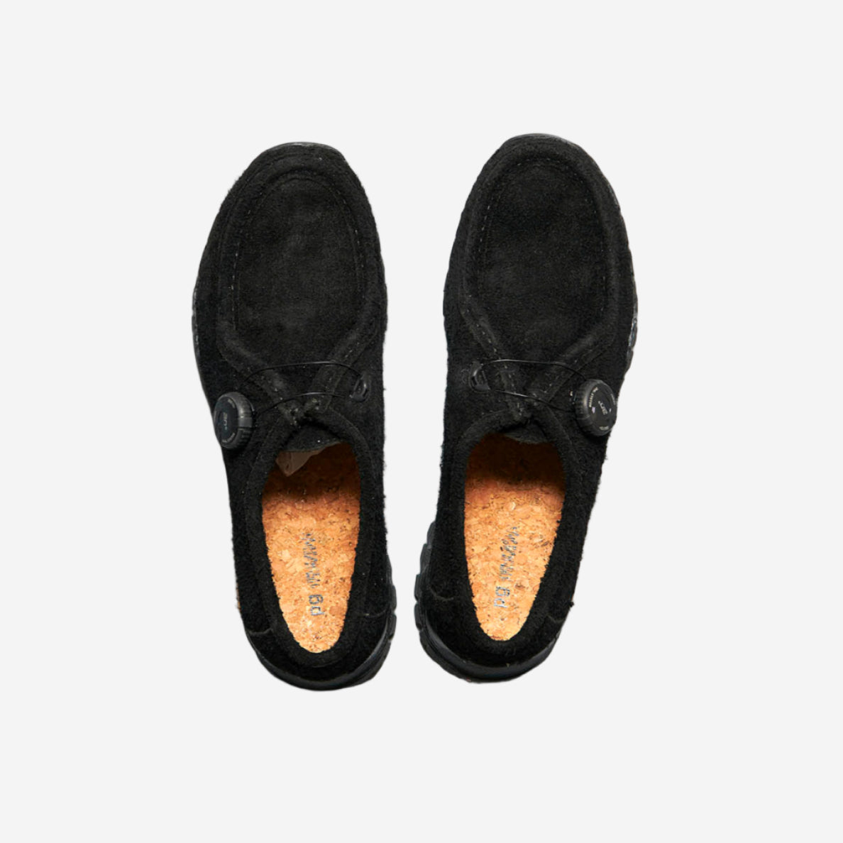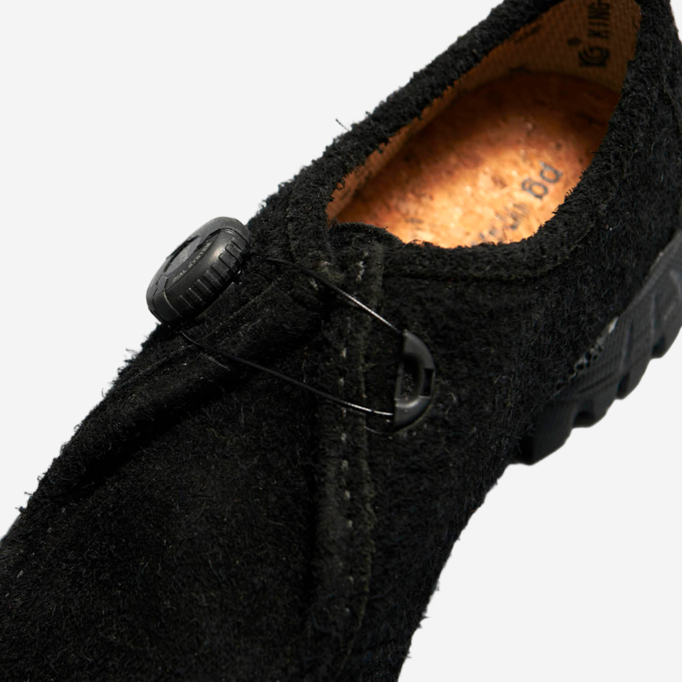 The popular KNOCK 2 model in black shaggy suede is equipped with KING-TEX, a waterproof and breathable membrane which allows moisture in the shoe to escape to the outside, improving breathability. The shoe's upper is made from shaggy suede, a type of suede with a longer, more textured nap. The FREELOCK system allows a secure fit and the Vibram MEGAGRIP sole, usually the reserve of trail running shoes, has been added to a pair of moccasin style shoes that are uniquely PLAYGROUND.