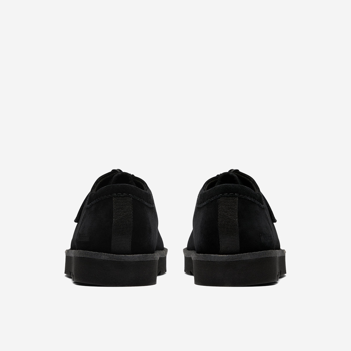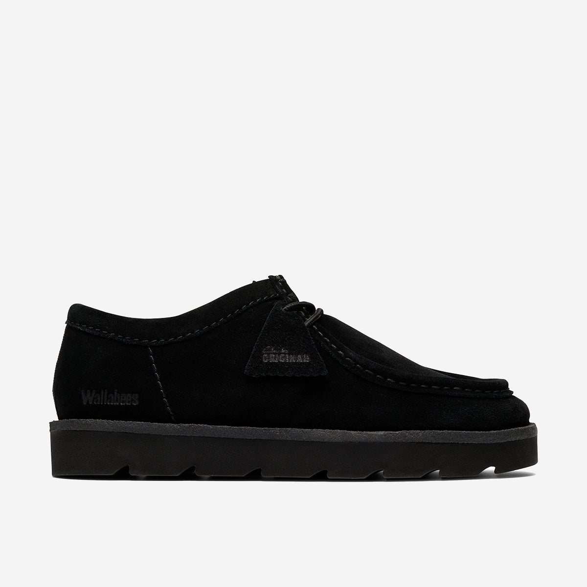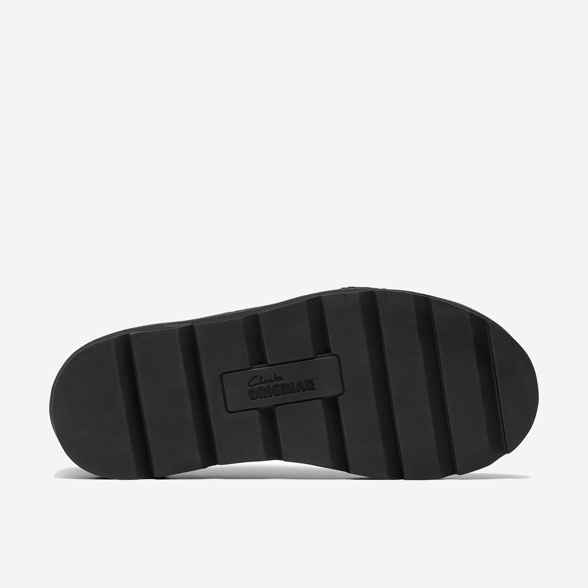 Introducing the Meare Walla, a fresh evolution from the summer Meare Buckle silhouette, designed with the same anatomical footbed for maximum comfort and lightweight construction. Staying true to the Clarks Originals DNA, this shoe features a crepe rand, blending heritage style with modern innovation. Crafted from premium black suede uppers. The subtle Wallabee™ logo on the side panel adds a nod to its iconic roots, while the added detail of a webbing strip on the heel offers a modern twist. The tonal EVA sole unit ensures a light, flexible feel while providing durable traction, and finishing touches include a round tonal lace and signature Clarks Originals FOB.