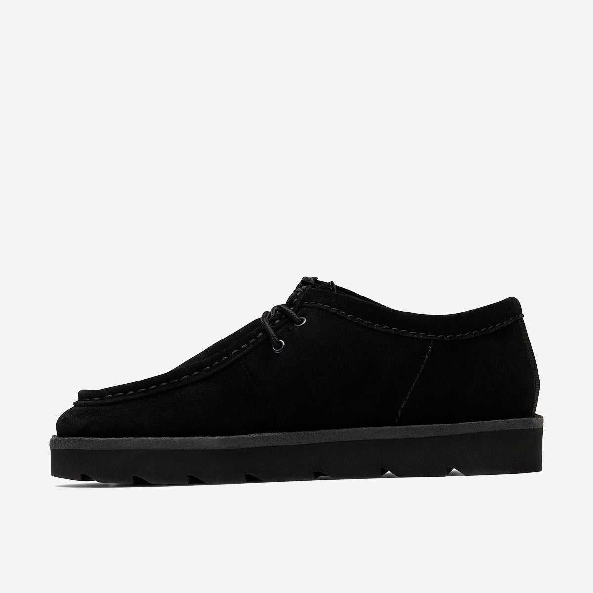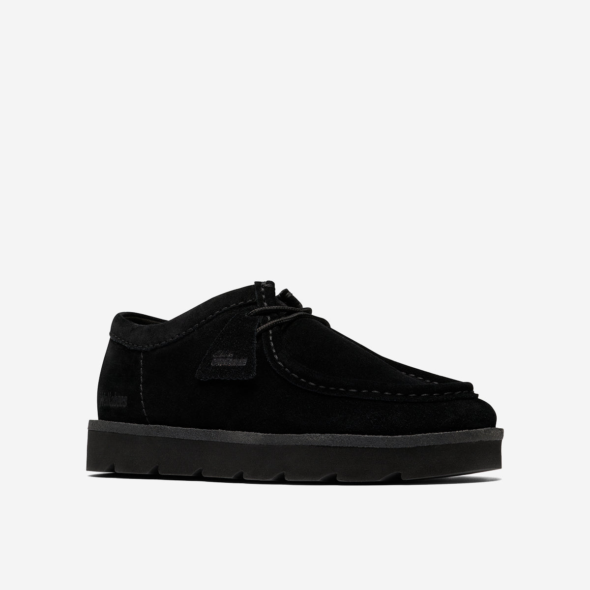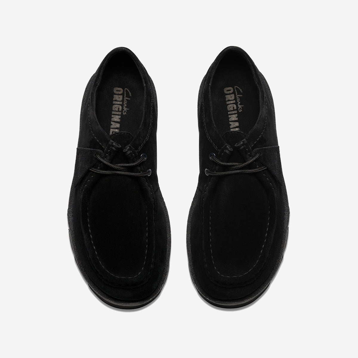 Introducing the Meare Walla, a fresh evolution from the summer Meare Buckle silhouette, designed with the same anatomical footbed for maximum comfort and lightweight construction. Staying true to the Clarks Originals DNA, this shoe features a crepe rand, blending heritage style with modern innovation. Crafted from premium black suede uppers. The subtle Wallabee™ logo on the side panel adds a nod to its iconic roots, while the added detail of a webbing strip on the heel offers a modern twist. The tonal EVA sole unit ensures a light, flexible feel while providing durable traction, and finishing touches include a round tonal lace and signature Clarks Originals FOB.