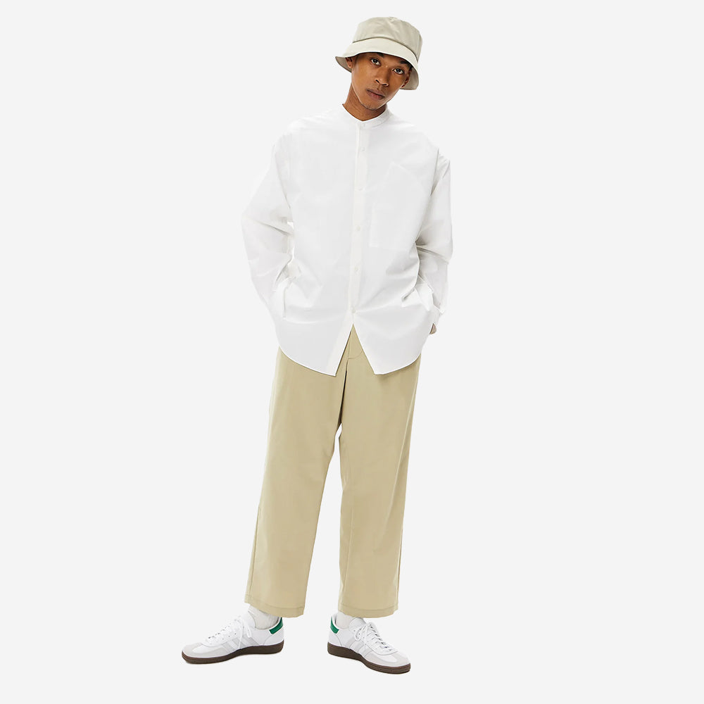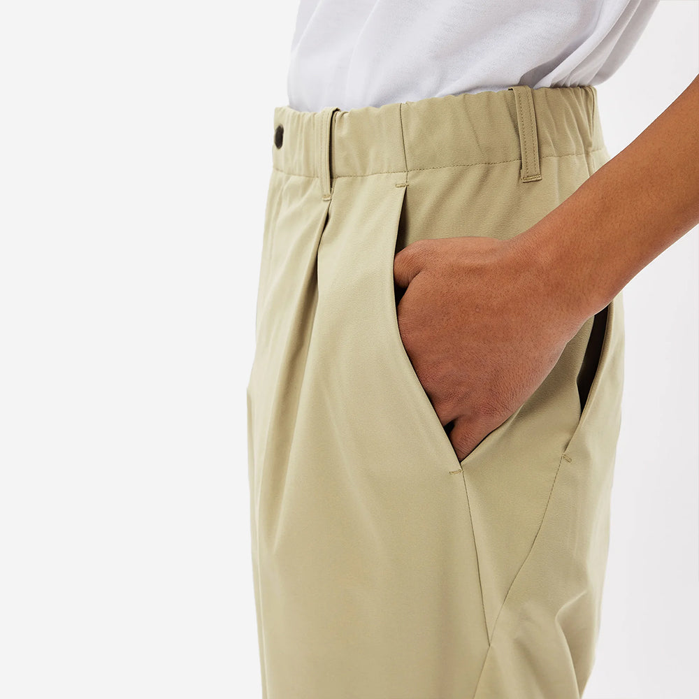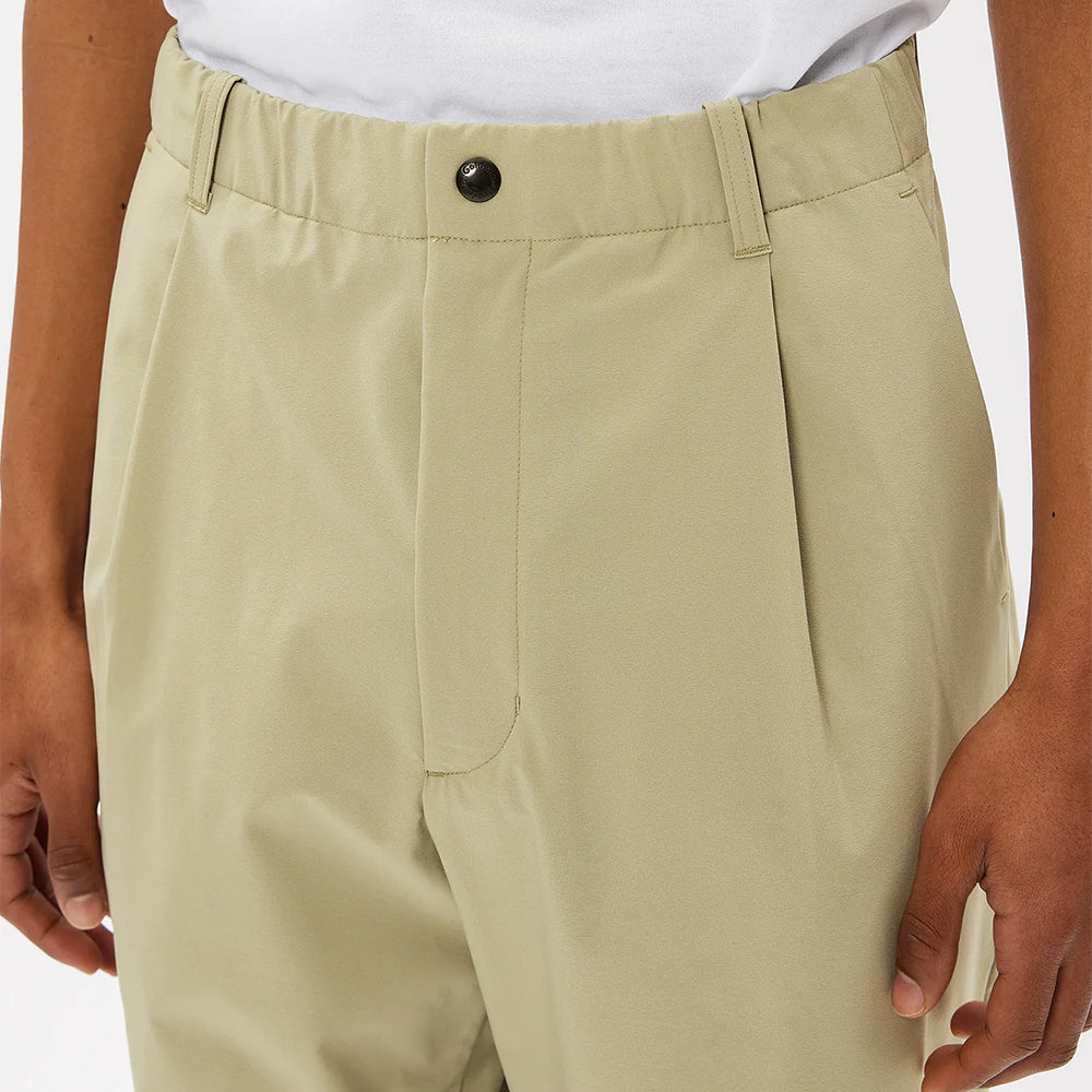 - Elastic waist band with snap button, zip fly, buckle belt and internal drawcord