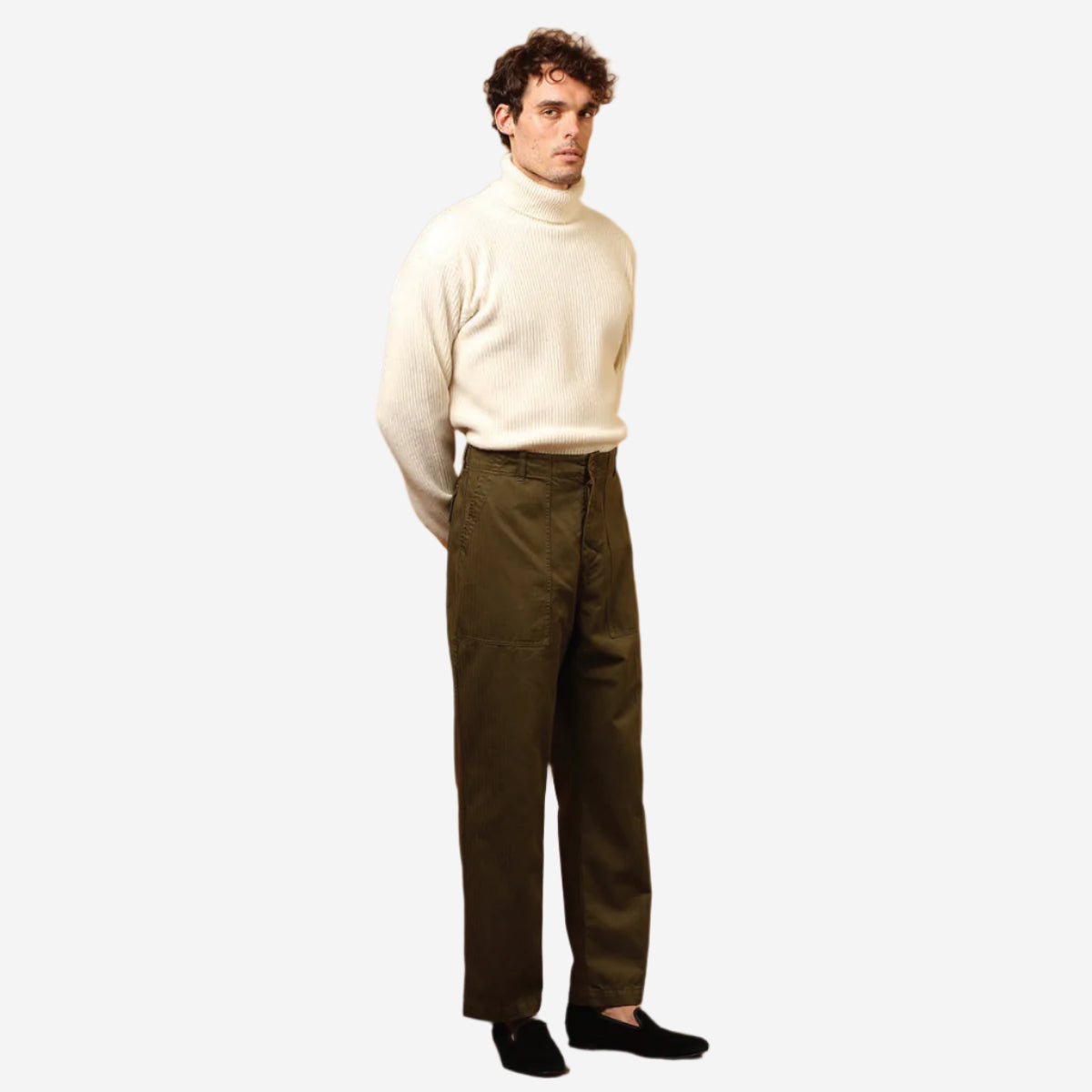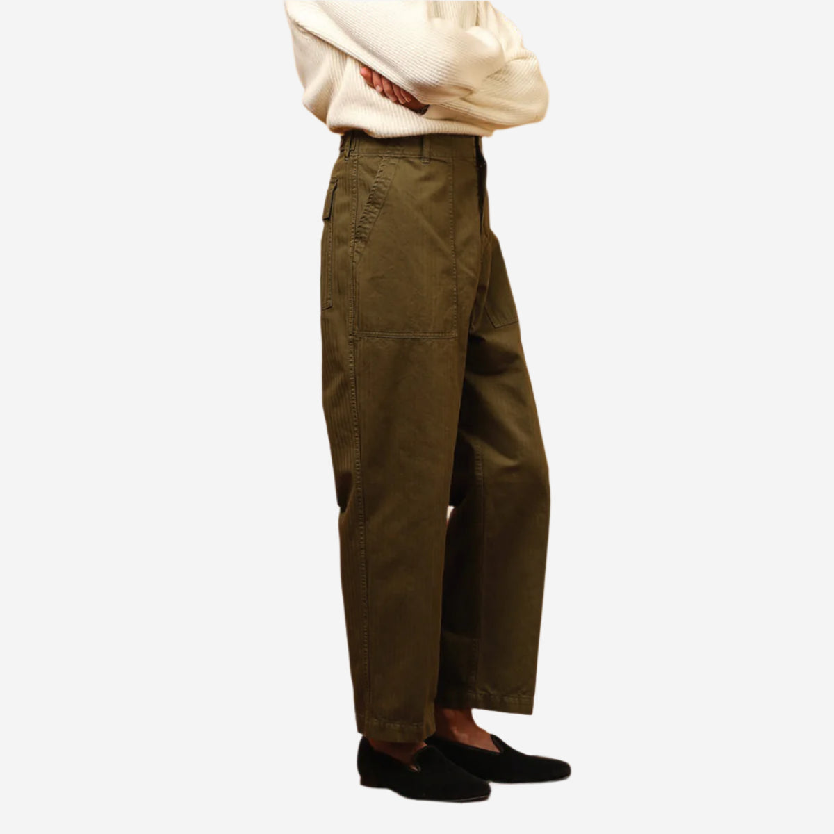 Texas Washed Herringbone Fatigue Pants - Olive Green